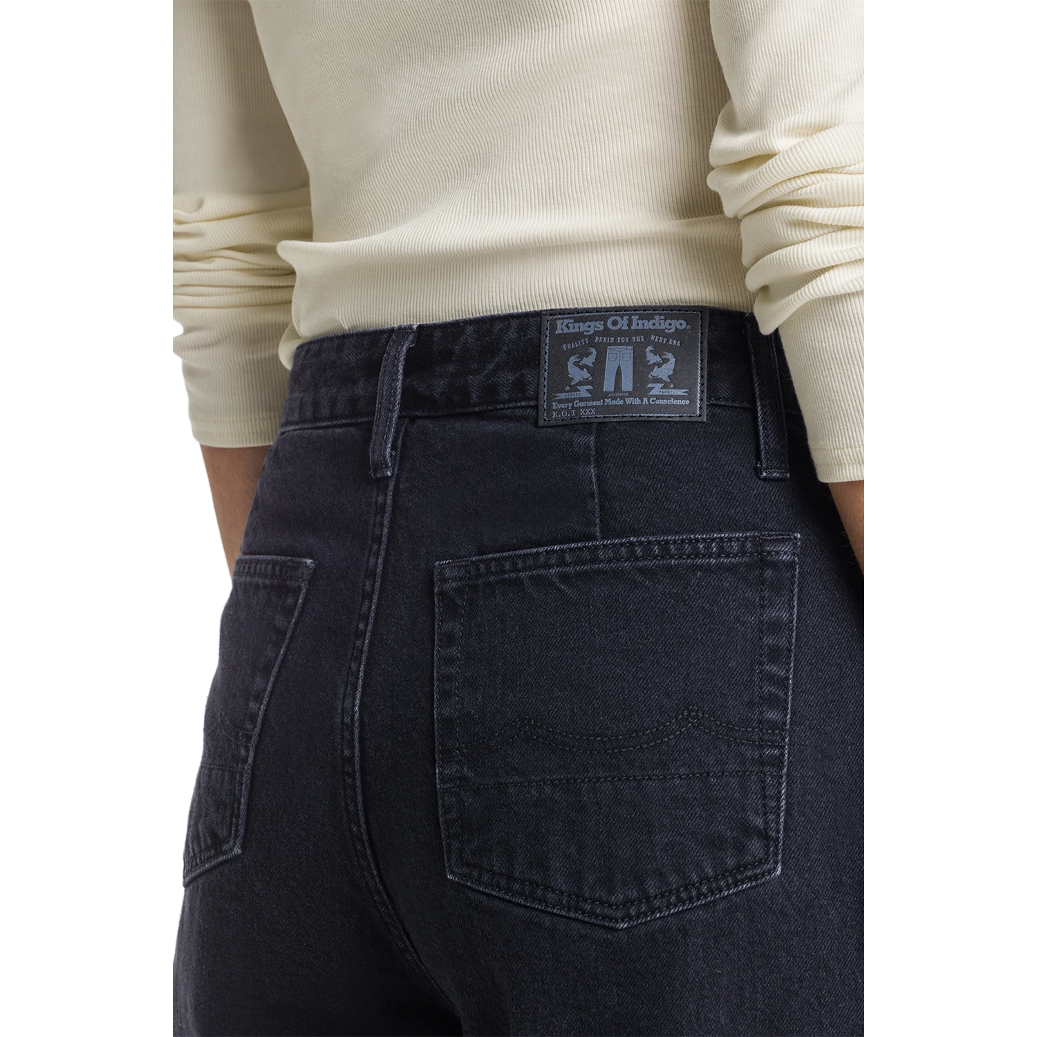 Die LEILA-Jeans sind eine hoch taillierte Passform mit einem Ballonbein und einem gekürzten Schnitt, der mühelos Volumen und Kante verleiht. Hergestellt aus einer Mischung aus GOTS-zertifizierter Vor- und Post-Consumer-Recycling-Baumwolle, sind sie fest, strukturiert und vollständig im Kreislaufdesign verwurzelt. Die Denim-Black-Waschung bleibt clean und markant mit einem abgenutzten, matten Finish. Kombiniere die LEILA mit einem cropped T-Shirt oder Tanktop für einen Kontrast oder trage sie mit einem oversized Hemd für maximalen Komfort. Form, Struktur und zertifizierte Nachhaltigkeit – alles in einem.