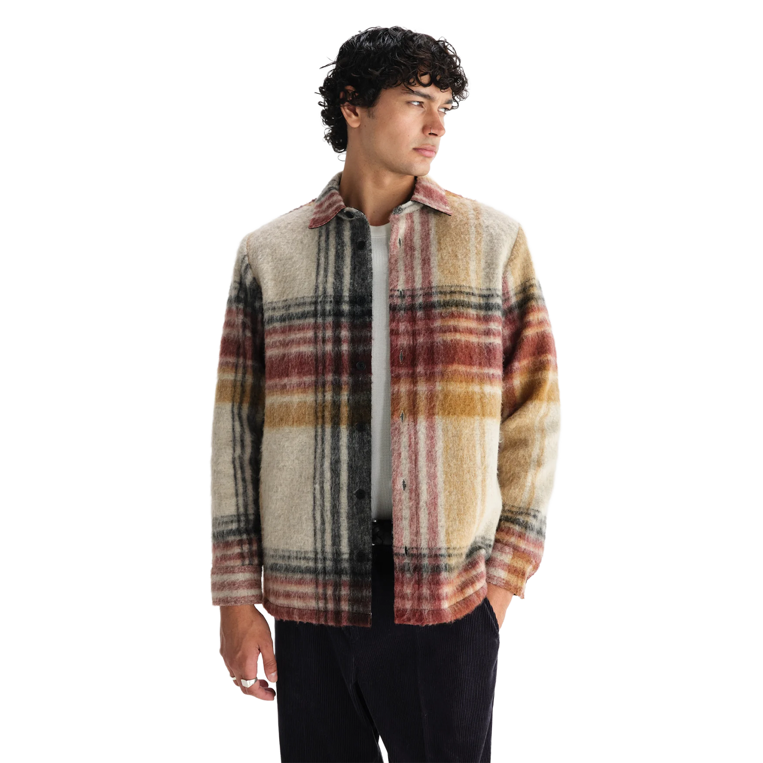 Neu in unserem Overshirt-Sortiment: das Nolan. Es ist in normaler Passform geschnitten, besteht aus einem warmen Wollmischgewebe und besticht durch ein auffälliges Karomuster in Anthrazit, Rostrot und Ocker auf ecrufarbenem Grund. Mit Seitentaschen und Steinnussknöpfen ist es ein auffälliges Kleidungsstück mit viel Charakter.
